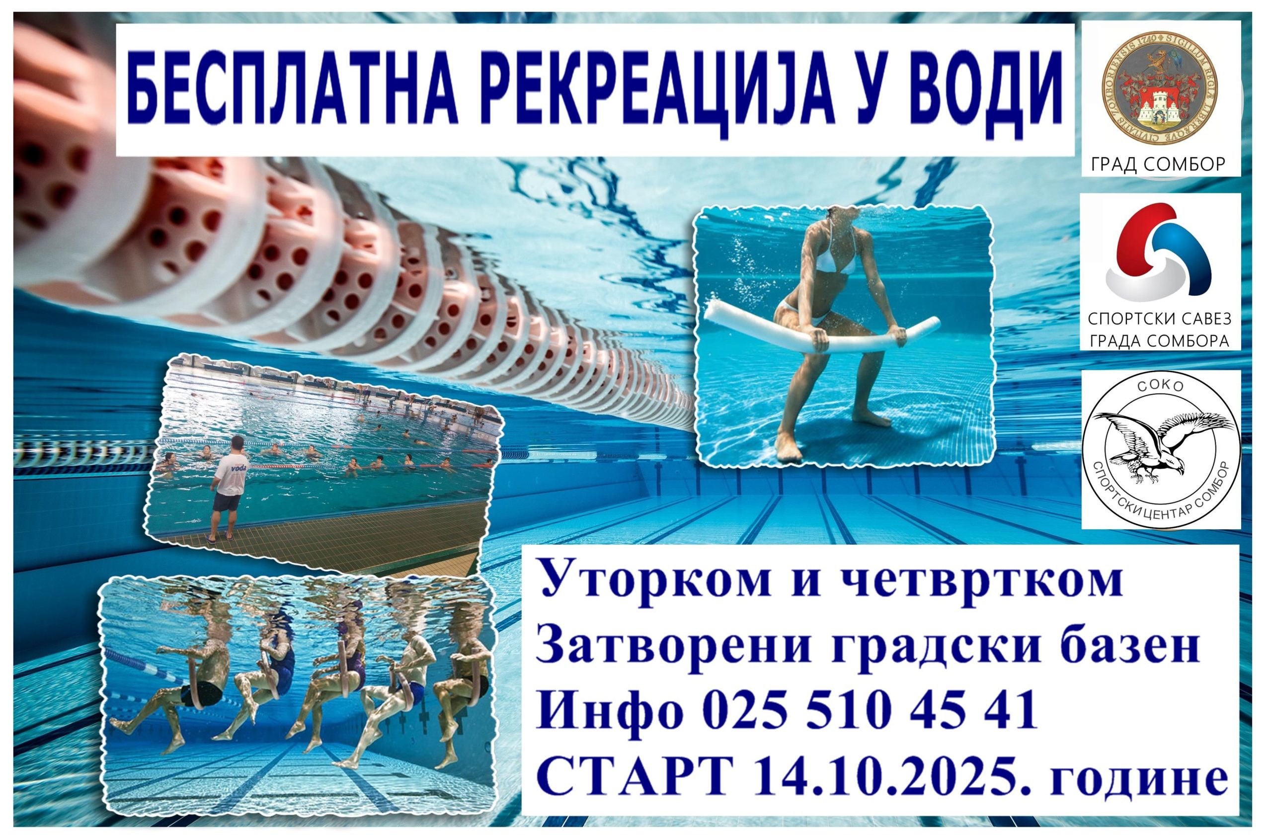 Обавештавамо вас да у уторак 14.10.2025. године стартује програм Бесплатна рекреације  у води за грађане града Сомбора.